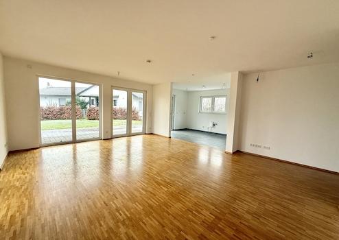 Ein weiteres Highlight dieses einzigartigen Angebots ist der großzügige Wohn-, Ess- und Küchenbereich. Dieser lichtdurchflutete Raum bietet Ihnen die ideale Gelegenheit, ihn nach Ihren Vorstellungen zu gestalten und gemütliche Stunden mit Familie und Freunden zu verbringen. Von hier aus gelangen Sie auf die große Terrasse, die mit ihrem wunderschönen Ausblick in die Natur zum Entspannen und Genießen einlädt. Angrenzend zur Terrasse finden Sie einen schönen Garten, der eine wahre Oase der Ruhe und Erholung darstellt.