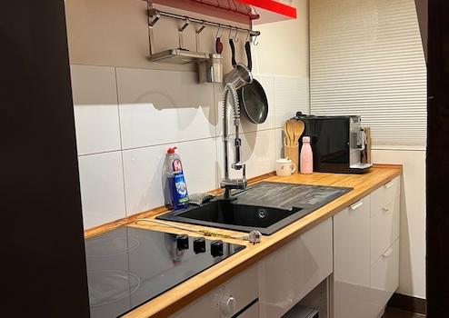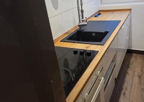 Die Küche ist offen. Die gesamte Wohnung ist hell und lichtdurchflutet. Sie kann auch wunderbar als Wohnatelier genutzt werden.
