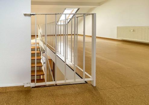 Über eine moderne Treppe gelangen Sie ins obere Geschoss, das mit einem großzügigen offenen Wohn- und Arbeitsbereich überzeugt. Dieser Raum bietet flexible Nutzungsmöglichkeiten und kann bei Bedarf auch abgetrennt werden. Dies ist ein klarer Vorteil für unterschiedliche Mieterzielgruppen, von Paaren über Familien bis hin zu Homeoffice-Nutzern.
