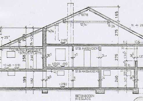 EG-DG: Umfassung 36,5 cm Maurerziegel + zusätzlich ca. 10 cm Wärmedämmverbundsystem = Gesamtstärke Aussenmauern rund 46 cm !!!