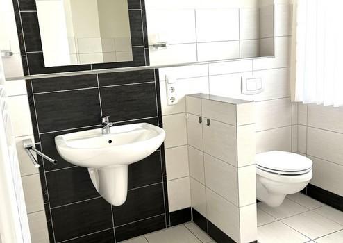 Im Badezimmer befindet sich eine Wanne, eine begehbare Dusche, ein Waschtisch und WC und eine angenehme Fussbodenerwärmung.