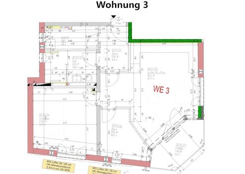 Das Angebot bezieht sich auf die Wohnung Nr. 3 im Erdgeschoß. Die Wohnung besteht aus dem attraktiven Wohn/Essbereich von ca. 30 m² mit integrierter Küche und Zugang auf die schöne Loggia von ca. 8 m². Über den Wohnraum gelangen Sie in das helle Büro von ca. 8 m² sowie in den großzügigen Schlafraum von ca. 18 m². Diele, Duschbad mit Fenster, Garderobe vervollständigen das Angebot. Die gesamte Wohnfläche beträgt ca. 77 m².