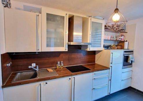 Sie wurde 2018 vollständig renoviert (Böden, Bäder, Ausstattung). Das Badezimmer mit Whirlpoolwanne – 2025 erneuert – bietet zusätzlichen Komfort und private Wellnessmomente im Alltag. Die moderne Einbauküche ist mit hochwertigen Geräten ausgestattet, darunter ein Kühlschrank der Marke Bauknecht (neu, September 2025). Die Wohnung befindet sich in einem sehr gepflegten Zustand. Ausgewählte Bereiche sind mit integrierten Deckenspots ausgestattet, die für eine angenehme Beleuchtung sorgen.