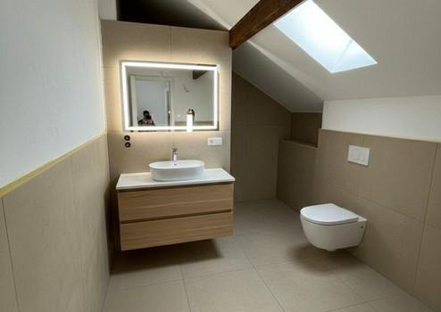Exklusives Badezimmer mit hochwertiger Geberit-Keramik, großer Regendusche und zusätzlichem Stauraum für Waschmaschine & Trockner