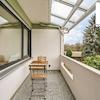 Die großzügige Loggia, welche überdacht ist und wunderschön in Richtung Grünanlage und Garten ausgerichtet ist, verfügt über einen hochwertigen Fliesenboden sowie eine Außensteckdose.