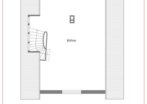 Ein echtes Plus ist der großzügige Bühnenraum, der viel Potenzial für den Ausbau eines weiteren Studio-, Arbeits- oder Jugendzimmers bietet.