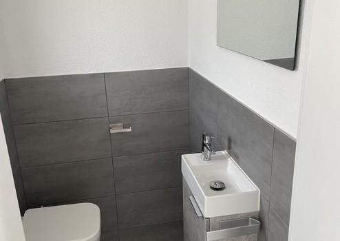 Ein großzügiges Badezimmer inklusive Badmöbeln und ein separates Gäste-WC sind vorhanden.