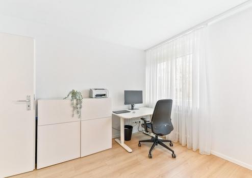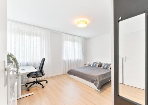 Helle, freundliche Räume mit modernem Bodenbelag in Wohn- und Schlafbereich