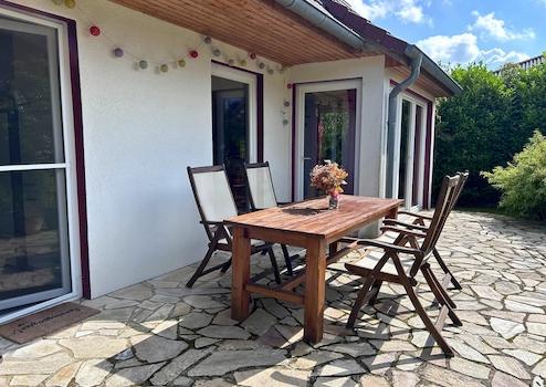 Arbeiten und Wohnen unter einem Dach: Der separate und ebenerdige Anbau eignet sich als Einliegerwohnung, Büroräume oder Praxis. Auch als zusätzliche Einnahmequelle durch Kurse, Coachings oder Untervermietung denkbar.