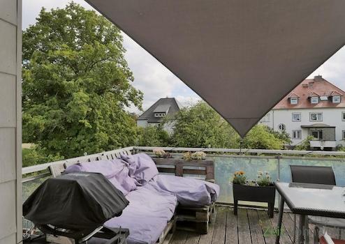 ### Please note the availability date! Bitte das Verfügbarkeitsdatum beachten! ### möblierte Wohnung in ruhiger, grüner Randlage von Kassel; gemütliches Wohnzimmer mit Sofa, Sideboards, TV und Ausgang zum genialen XXL-Dachbalkon mit Esstisch, Sitzecke, Grillstation und Sonnensegel; Schlafzimmer mit breitem Bett, Schreibtisch und Kleiderschrank; Küche mit EBK und Esstisch; kleines Bad mit Dusche und Waschbecken; kleines separates WC (Wichtig: wegen der Schrägen in Dusche und WC ist die Wohnung ideal für Personen bis max. 1,80m Größe geeignet!); Wohnungsflur mit Garderobe; WLAN vorhanden; Münz-Waschmaschine im Keller; Pauschalmiete 985,00 Euro; Vermietung an max. 1 Person; Kaution 1.200,00 Euro; Endreinigung Mietersache; Mindestmietdauer 3 Monate; Pflichtangaben zum Energieausweis: Energieausweis gültig bis: 21.09.2033; Baujahr Gebäude: 1935; Energieausweis: nach Bedarf; Energieverbrauch: 219.5 kWh/(m²a); Energieeffizienzklasse: G; Primärer Energieträger: Erdgas E