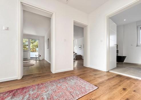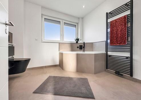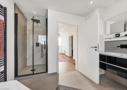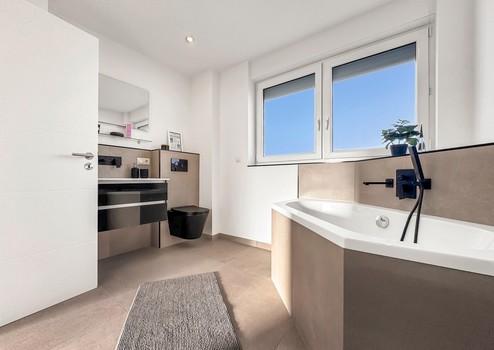 Das im Jahr 2025 renovierte Haus bietet, neben seinem großzügigen und modernen Grundriss mit insgesamt drei Schlafzimmern und zwei Bädern, viele weitere Annehmlichkeiten: wie die neuen Isolierglasfenster mit elektrischen Rollläden, eine A++ Luftwärmepumpe der neuesten Generation für Heizung und Wasseraufbereitung, eindrucksvolle Badezimmer, eine große Dachterrasse sowie eine Garage mit davor liegenden zwei Stellplätzen. Ein unausgebauter Keller mit separatem Eingang, welcher vom neuen Eigentümer zusätzlich zu Wohnzwecken ausgebaut werden könnte, ist ebenfalls vorhanden. Die hellen und zugleich stilvollen mit hochwertigen Materialien gestalteten Räume runden diese Immobilie ab.