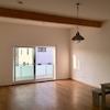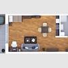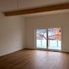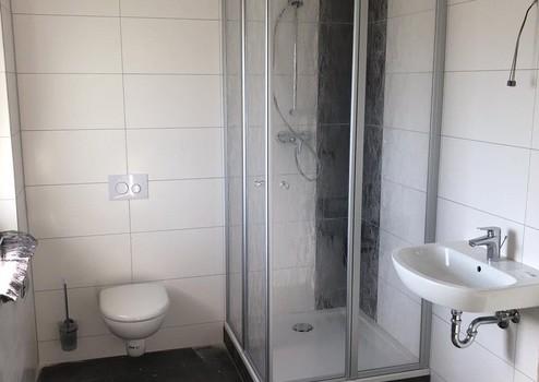 Moderne Ausstattung wie Laminatboden im Wohnbereich und Fliesen im Bad.