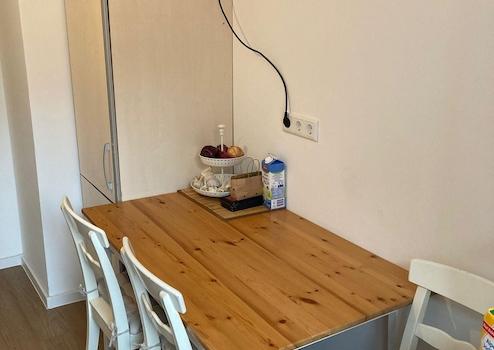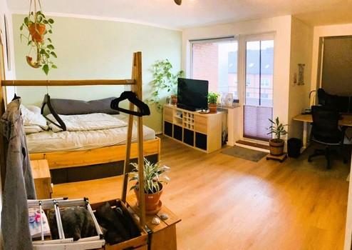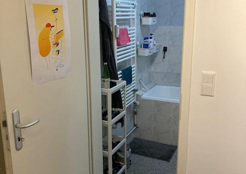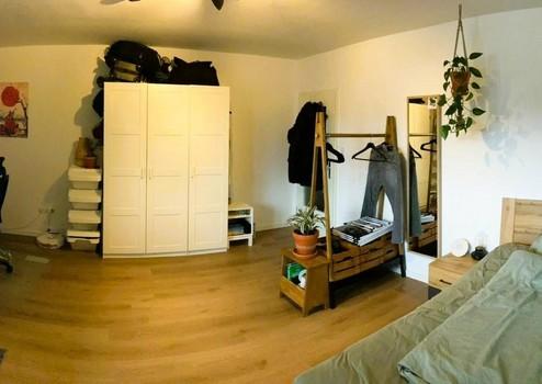 Die hier angebotenes Zimmer befindet sich in einer 3er WG im 4. Obergeschoss (mit Aufzug) des Mehrfamilienhauses. Das Zimmer ist 21qm Groß und möbliert mit einem Schrank und einen Tisch (im Keller und nutzbar wenn notwendig). Insgesamt 3 Zimmer vorhanden und 2 Zimmer schon vermietet. Die WG verfügt über eine eingerichtete Küche mit Spülmaschine, ein Vollbad, einen Abstellraum, eine gemeinsame Waschküche und einen gemeinsamen Fahrradabstellraum.