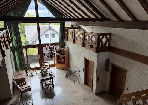 Über eine Holztreppe gelangen Sie auf die große Empore mit halb-umläufiger Galerie. Hier gibt es noch jede Menge Platz für Hobby- und Freizeitaktivitäten. Auch als Atelier für Ihre künstlerischen Aktivitäten wäre dies durchaus nutzbar.