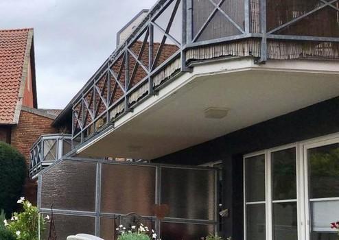 Kleine, Wohnanlage (10 Parteien) auf 4.500 qm Fläche, davon 3.000 qm gepflegter Garten mit altem Baumbestand und Bachlauf auf dem Grundstück! Diese Wohnung befindet sich im Obergeschoss und verfügt über einen großen Süd-/West Balkon.