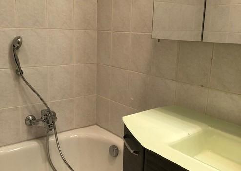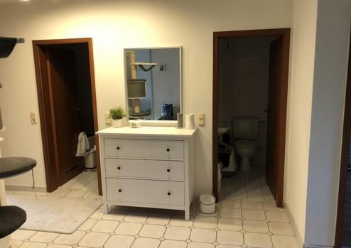Die Wände im Bad/ Gäste-WC sind gefliest. Das innenliegende Bad verfügt über Vollausstattung (Dusche + Badewanne).