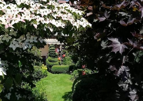 Liebevoll angelegter Garten vor und hinterm Haus