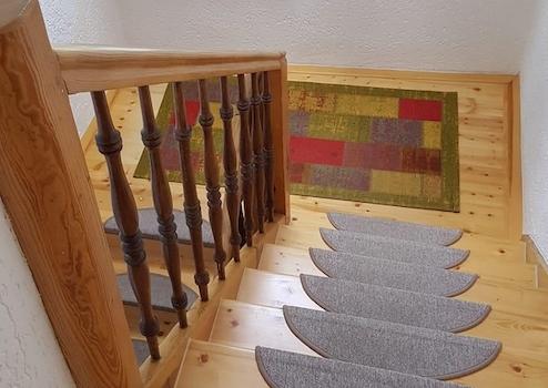 Alle Wände im gesamten Wohnbereich sind mit einem Struktur-Rauputz versehen. Das Treppenhaus wurde in 2019 mit neuen Holzstufen belegt, 2025 erneut abgeschliffen und neu versiegelt, das ursprüngliche Holzgeländer restauriert.