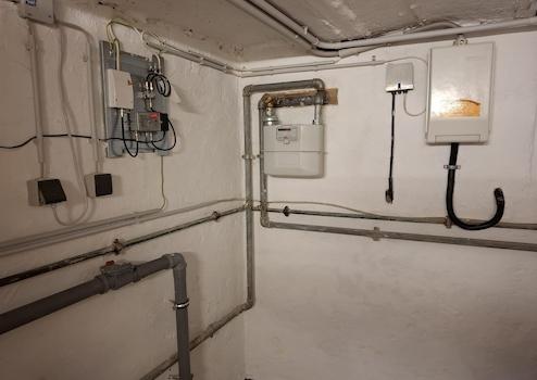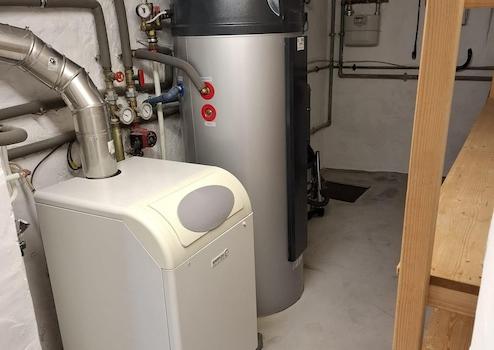 Der Keller des Hauses besteht aus einem größeren Raum und 2 kleineren Räumen sowie dem Technikraum mit Waschmaschinen- und Trockner-Stellplatz. 2023 wurde eine Brauchwasser-Wärmepumpe mit einem 280 Liter Boiler zur Warmwasserbereitung installiert.