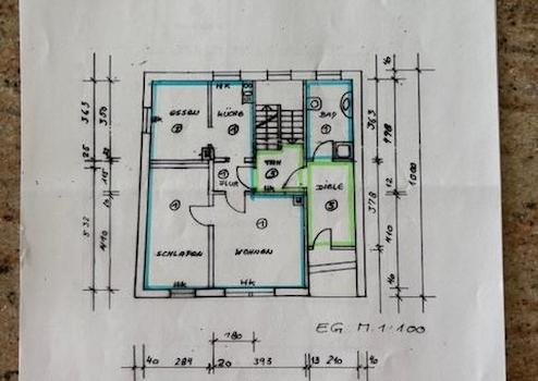 Das EG kann auch als Büro / Praxis verwendet, bzw. als 2. Wohneinheit umgestaltet werden. Hierfür sind genehmigte Pläne zum Umbau und Ausbau vorhanden.