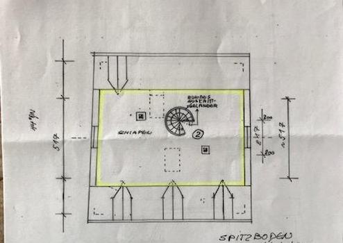 Aus dem Wohn- Essbereich führt eine Wendeltreppe ins 2. Obergeschoss (Spitzboden), wo sich das Schlafzimmer mit Ankleide befindet. Im Schlafzimmer wurde ebenfalls im Rahmen der Kernsanierung das Gebälk freigelegt. Beide Seiten der Dachschrägen verfügen über Einbauschränke mit Schiebetüren, 2014 wurde ein neuer Parkettboden verlegt, 2017 das Schlafzimmer mit einer Klimaanlage ausgestattet.