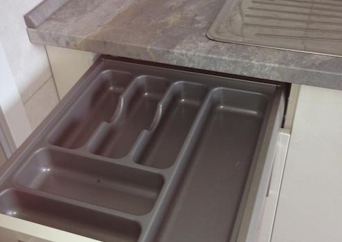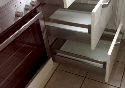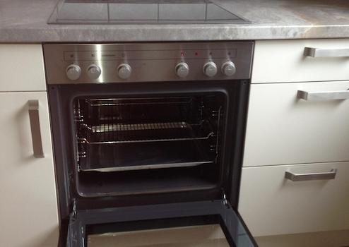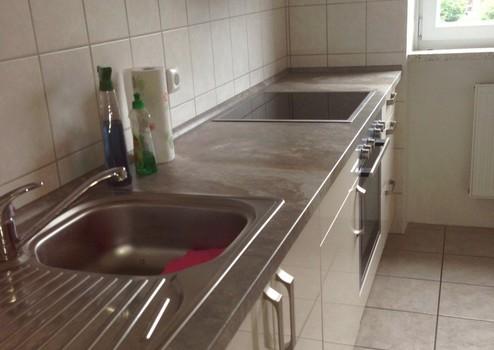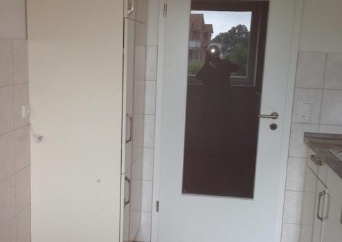 Eichenparkett im Wohnzimmer, Designerböden (Vinylböden) in den weiteren Zimmern und im Flur, Fliesen in der Küche und im Bad sowie im WC, weisse Türen, Hochglanzlack Küchenmöbel in Magnolenfarbe, Auszugschubläden und Besteckkasten im Unterschrank, Kücheneßtisch in der Farbe der Arbeitsplatte, der noch orig.verpackt ist, Elektrogeräte: eingebauter Kühlschrank. Ceran Kochplatte, Backofen, Nirosta Spüle, Boiler, Abfalleimer.