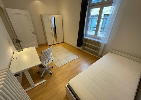Jedes Zimmer ist separat abschließbar, teilmöbliert (je nach Ausstattung: Bett, Schrank, Tisch, Stuhl) und verfügt über große Fenster mit viel Tageslicht. Die WG teilt sich eine geräumige Eingangsbereich, eine neuwertige Einbauküche, ein modernes Tageslichtbad mit Dusche sowie WC.