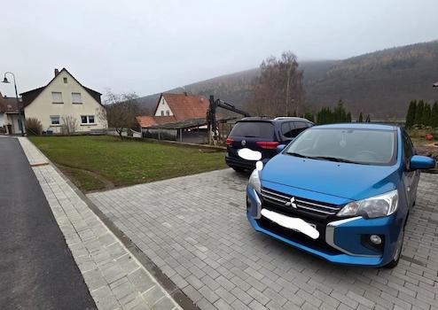 Auf dem Grundstück wurden Ende September zwei Parkplätze fertiggestellt (ca.48m²). Da die Straße im Sommer erneuert wurde, ist das Grundstück von der Seite der Straße noch offen.