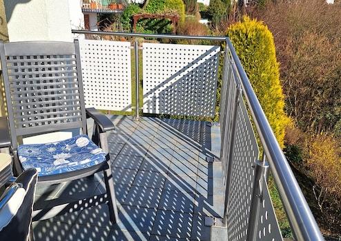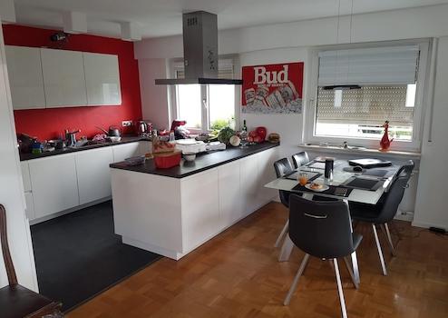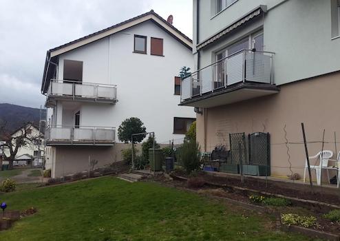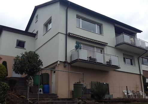 Das Haus wurde in Hanglage errichtet, das Erdgeschoss liegt ebenerdig zur Straße und bietet eine Wohnfläche von ca 90 m². Im Untergeschoss befindet sich eine ca 80 m² große Einliegerwohnung. Obwohl diese Einheit unterhalb des Straßenniveaus liegt, wirkt sie durch die Hanglage hell und freundlich. Sie verfügt über großzügige Fensterläden sowie einen eigenen Balkon und eine Terrasse mit Blick ins Grüne und die vier Burgen.