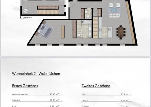 Die Wohnung erstreckt sich über zwei Ebenen, ist hochwertig ausgestattet und bietet viel Platz für komfortables Leben und Arbeiten.