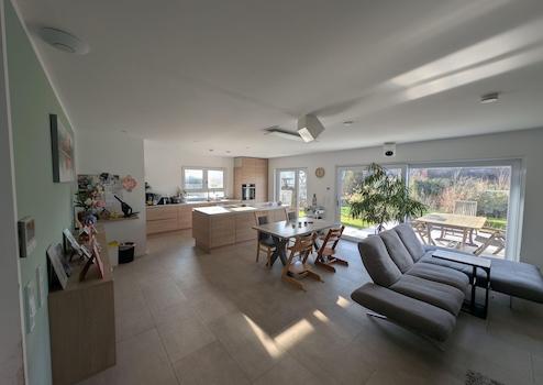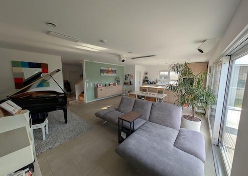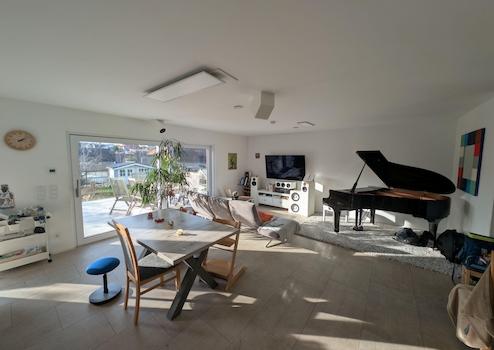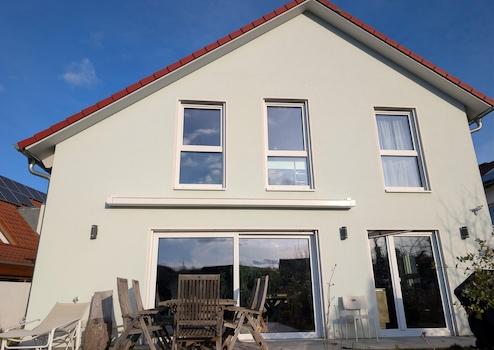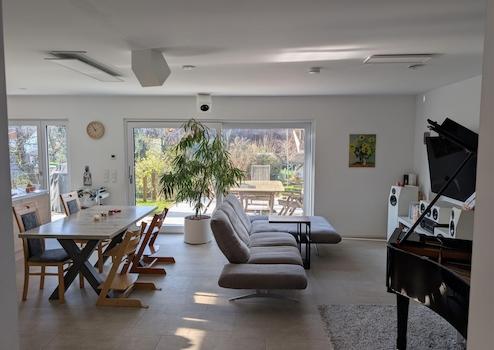 Technisch besticht das Haus durch komplett elektrische Rollläden und Markise, vollelektrische Eingangstür mit Finderabdrucksensor und Abschließautomatik sowie zentraler Fußbodenheizung in sämtlichen Räumen. Die zentrale Lüftungsanlage inklusive Wärmerückgewinnung macht das manuelle Lüften obsolet und spart neben der hervorragenden Dämmung des Hauses deutlich bei den Heizkosten. Dies kombiniert mit der installierten Solarthemieanlage zur Warmwasserbereitung sowie der Photovoltaikanlage (9,32kW) mit Speicher (10kWh) führt zu extrem niedrigen Energiekosten. Seit Einzug lagen diese komplett bei lediglich etwa 700€ pro Jahr. Der Energieverbrauchsausweis liegt vor und errechnet einen Endenergiebedarf in Höhe von 28,51 kWh/(m²·a) womit das Haus der Energieeffizienzklasse A+ zugeordnet wird.