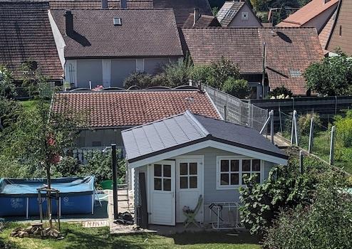 Das ideal geschnittene Grundstück bietet ausreichend Platz zum Entspannen, Gärtnern oder Ballspielen. Fahrräder und andere Gerätschaften können bequem in der 16 m² großen Gartenhütte untergebracht werden.