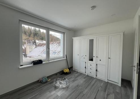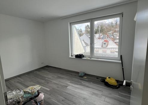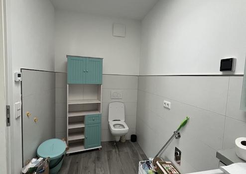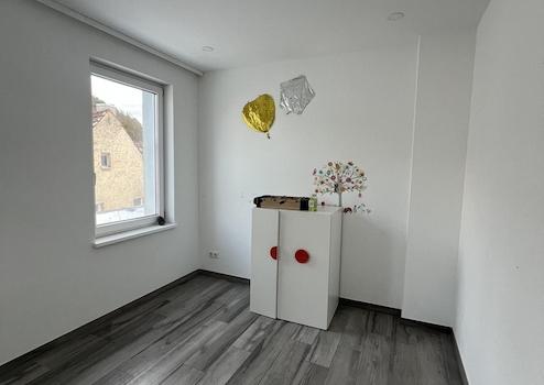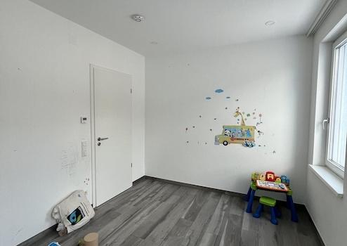 Vom Flur aus sind das Schlafzimmer sowie das Kinderzimmer bequem erreichbar. Darüber hinaus stehen ein innenliegendes Badezimmer mit Oberlicht, Dusche, WC und Waschmaschinenanschluss sowie eine separate Gästetoilette zur Verfügung.