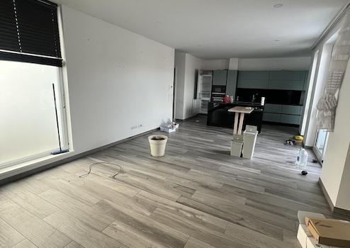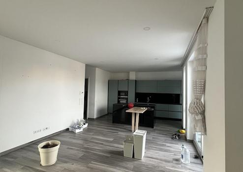 Der offen gestaltete Wohn-, Ess- und Küchenbereich bildet das Herzstück der Wohnung und lädt zum Wohnen und Verweilen ein.