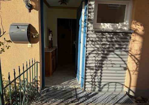 Die überdachte Terrasse (ca. 5 m × 3,5 m) ist beleuchtet und zusätzlich mit einer Markise zur Beschattung ausgestattet – ideal für sonnige Tage. Dank der Süd-West-Ausrichtung genießen Sie hier Sonne bis in die Abendstunden.