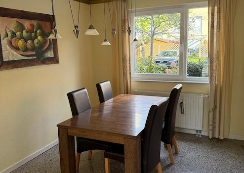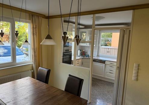 Im Erdgeschoss erwarten Sie ein helles Wohnzimmer mit direktem Zugang zur überdachten Terrasse, ein separates Esszimmer, eine Küche sowie ein Gäste-WC.