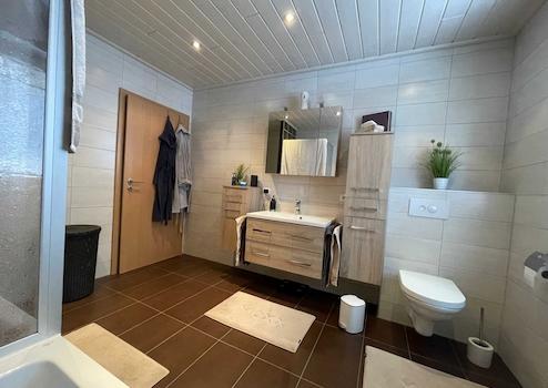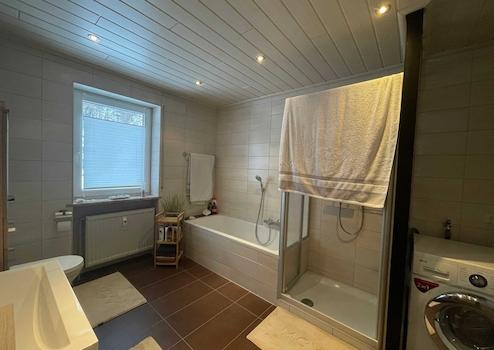 Zum Anwesen gehören eine Doppelgarage mit zwei separaten Toren sowie zwei weitere Außenstellplätze vor der Garage. Das Haus wurde 2001 komplett gestrichen, die Westseite zusätzlich gedämmt, die doppelt verglasten Fenster wurden 2006 erneuert. Das Badezimmer im Erdgeschoss wurde 2013, das im Obergeschoss 2017 modernisiert. Der Dachgeschossausbau erfolgte schrittweise zwischen 2005 und 2010. Teilweise wurden die Türen zuletzt 2024 erneuert. Die gepflegten Außenanlagen unterstreichen den tollen Gesamteindruck des Anwesens.