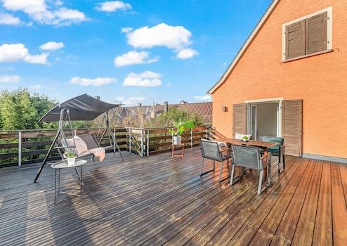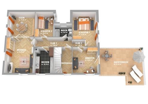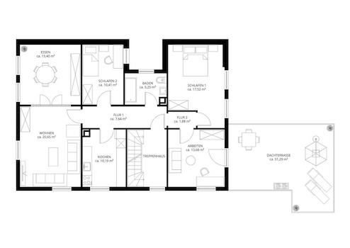 Die großzgüge Süd-Dachterrasse mit ca. 50qm schafft einen gemütlichen Außenbereich, der schnell zum Lieblingsort wird – für den ersten Kaffee am Morgen, zum Spielen oder für entspannte Abende