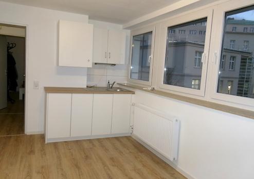 -offene Küche, Küchenschränke werden zur Nutzung überlassen.