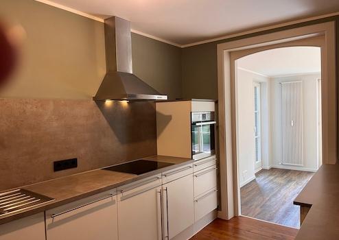 Die 10 qm grosse Einbauküche ist direkt mit dem Wohn-Essbereich verbunden .