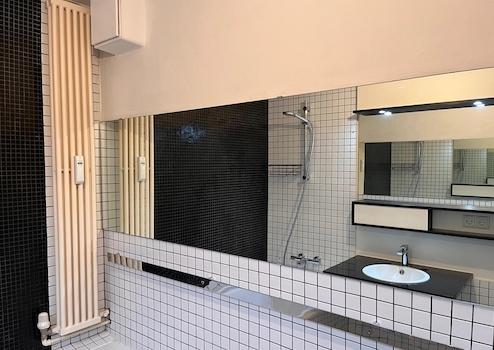 Sie befindet sich im Erdgeschoss eines Dreifamilienhauses vom Baujahr 1950. Erweitert wurde