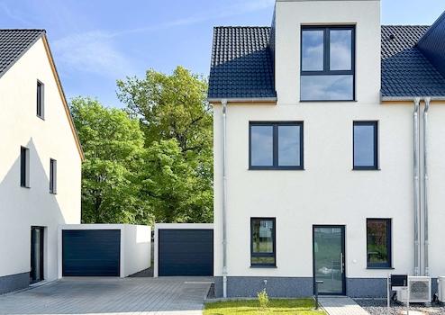 Dieses moderne, dreigeschossige Neubauhaus besticht durch seine hochwertige, massive Bauweise und erfüllt dank einer effizienten Luft-Wasser-Wärmepumpe sowie einer Photovoltaikanlage mit Speicher zur Warmwasserbereitung die Vorgaben des energieeffizienten KfW-55-EE-Standards.