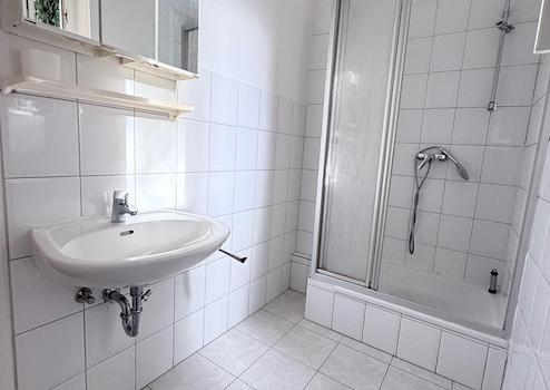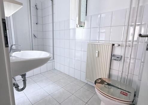 - Tageslichtbad mit Duschwanne, erneuerten Fugen, neuer Toilette und ohne alten Spiegelschrank