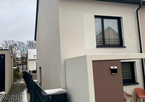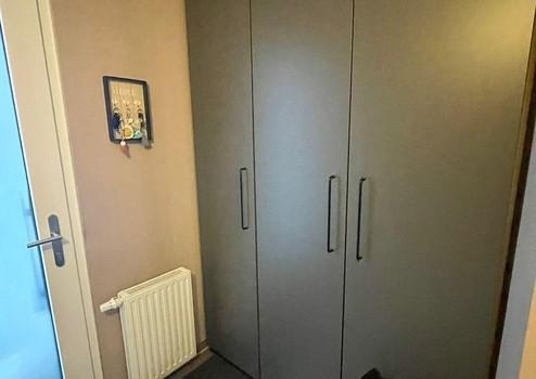 Über einen kleinen Vorgarten gelangen Sie zum Hauseingang mit Vordach und einem Vorgartenschrank, in dem Sie Fahrräder, Laufräder oder einen Kinderwagen unterstellen können.
