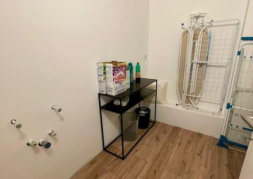 Ein Flur verbindet zwei Zimmer, ein Bad, einen Abstellraum und eine Nische, die Sie als Stauraum oder als kleinen Arbeitsplatz nutzen können. Das Bad ist ausgestattet mit Waschtisch, WC, einer Badewanne und einer Dusche. In nächster Nähe befindet sich der Abstellraum, der Besen, Staubsauger, Putzmittel und vieles mehr hinter einer Tür verschwinden lässt.