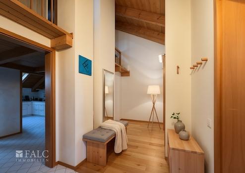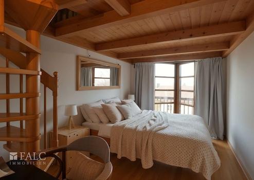 Die obere Ebene bietet ein offen gestaltetes Büro sowie eine stilvolle Empore, die den typischen Maisonettecharakter unterstreicht. Zusätzlich steht ein weiteres Zimmer mit Empore zur Verfügung, das sich ideal als Arbeits Gäste oder Hobbyraum nutzen lässt.