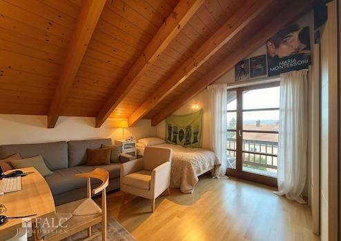 Auf der unteren Wohnebene erwarten Sie zwei gut geschnittene Schlafzimmer sowie ein gemütliches Wohnzimmer mit direktem Zugang zum großen Balkon. Von hier aus genießen Sie einen beeindruckenden Blick auf den See, der diese Wohnung zu etwas ganz Besonderem macht.