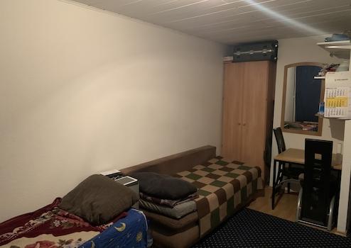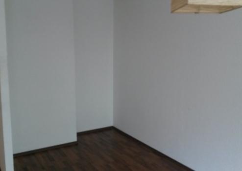 im Wohn-/Schlafbereich ist ein Laminatboden verlegt.