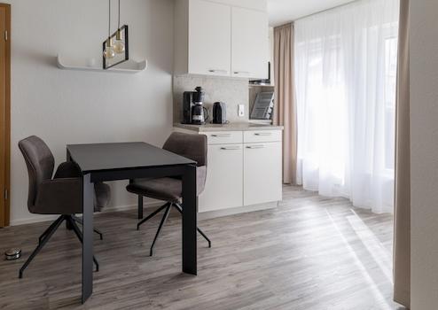 Diese liebevoll eingerichtete 1-Zimmer-Wohnung bietet alles, was man für einen komfortablen Aufenthalt benötigt. Die Wohnung ist vollständig ausgestattet – inklusive Geschirr, Handtüchern, Bettdecken und Bettwäsche, Bügeleisen, Staubsauger und Waschmaschine.