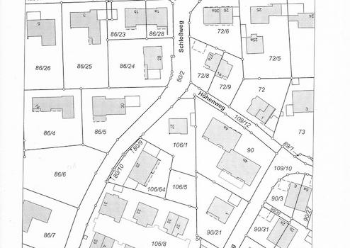 Das angebotene Grundstück besteht aus zwei Flurnummern (Fl.-Nr. 106/1 und 106/5), zu ersterer Flurnummer ist die Erschließung vorhanden.